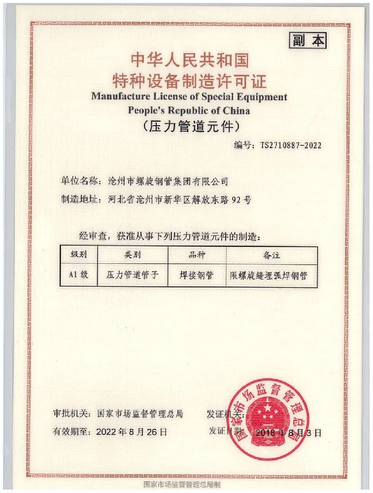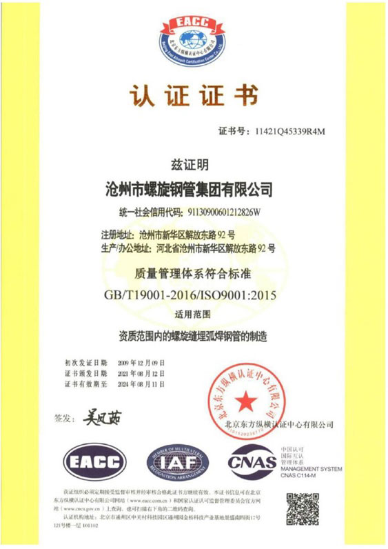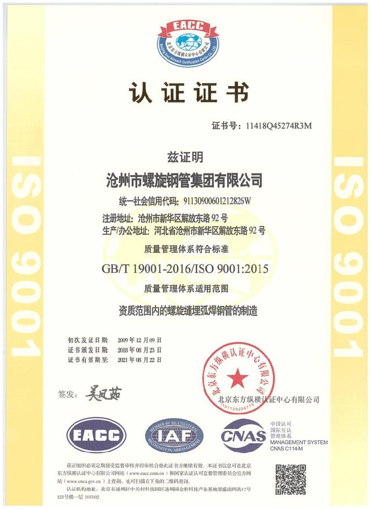 滄州市螺旋鋼管集團有(yǒu)限公司