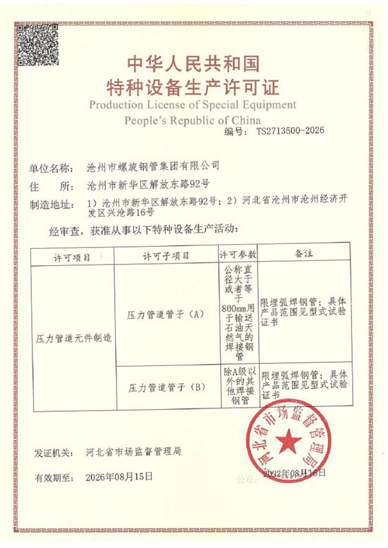 歡迎(yíng)進入滄州市螺旋鋼管集團有(yǒu)限公司    主營產品:螺旋鋼管 石油(yóu)管道螺旋鋼管 出口螺旋鋼管 天然(rán)氣(qì)管道螺旋鋼管
